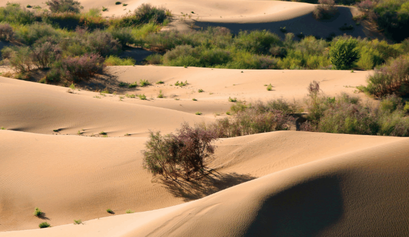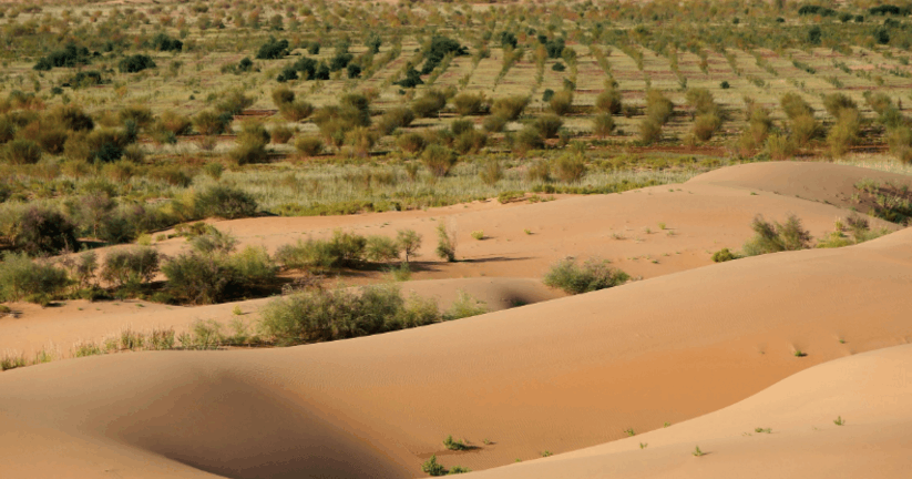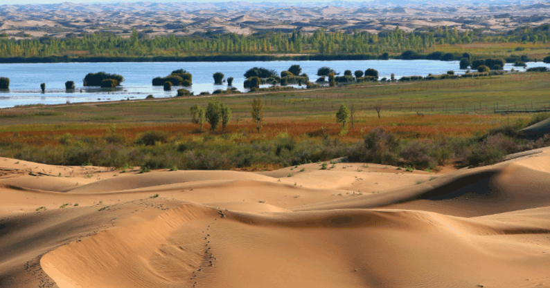 沙漠作为干旱缺水,植物稀少的地区,地表完全被沙所覆盖。生命的禁区,也是沙漠给人的刻板印象。中国是世界上荒漠化面积较大的国家之一,是受影响人数最多、防治成绩最显著的国家,荒漠化土地面积261.2万平方公里,占国土面积的27.2%。库布其沙漠位于内蒙古鄂尔多斯高原北部,是中国的第七大沙漠,也是距北京最近的大型沙漠。十几年前,这里的沙尘一夜之间就可以刮到北京。气候改变,库布其沙漠年降雨量从70mm到350mm,增加500%;生物多样性复苏,100多种已经消失的野生动物重现沙区。最终,库布其沙漠成为人类历史上第一个被成功治理的上万平方公里的沙漠,创造了人类生态工程学上的奇迹。更为难能可贵的是,通过发展沙漠经济,人们摆脱贫困,实现富裕。2014年,库布其沙漠亿利生态治理区被联合国确认为“全球生态经济示范区”。沙漠农牧民人均收入从2000元到3万元,10万群众摆脱贫困。2007年至今,由联合国环境规划署、中国科技部、国家林业局、内蒙古自治区主办、亿利公益基金会承办的库布其国际沙漠论坛,已经在库布其举办了5届。如今,在库布其国家沙漠公园七星湖景区,游人可以尽情领略沙漠、湖泊、草地、树林、湿地等多种自然风光,五星级酒店也能满足游客的休闲度假需求。中国在28年前开始付诸实践的“沙漠经济学”,对于“一带一路”沿线国家和地区甚至全世界的生态环境改善、应对气候变化和消除贫困,都具有非常重要的推广借鉴意义。