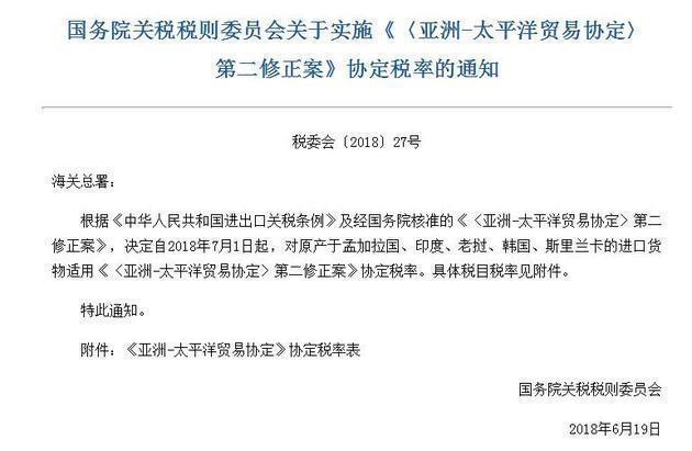 中国国务院周二宣布,将下调部分亚太国家的大豆进口关税,并公布了其他关税下调的产品清单。中国将自7月1日起将印度、韩国、孟加拉国、老挝和斯里兰卡大豆进口关税税率从3%调降至零。这份清单还包括化学品、农产品、医疗用品、服装、钢铁和铝制品,这些产品分别获得不同程度的关税税率下调。中国一直在加大努力提振今年的大豆产量,此前中国威胁对美国进口大豆征收25%报复性关税。中国还从巴西和俄罗斯等国进口大豆,力图增加大豆进口来源。《亚洲-太平洋贸易协定》协定税率表(部分)