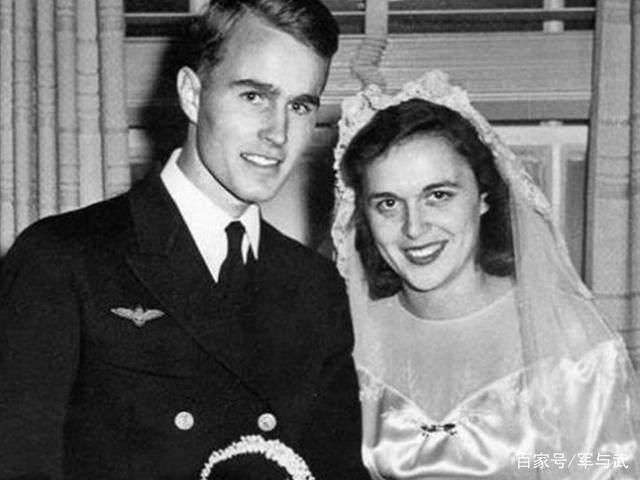 美国前总统乔治布什和妻子芭芭拉在1944年的结婚照,当时俩人可谓是郎才女貌