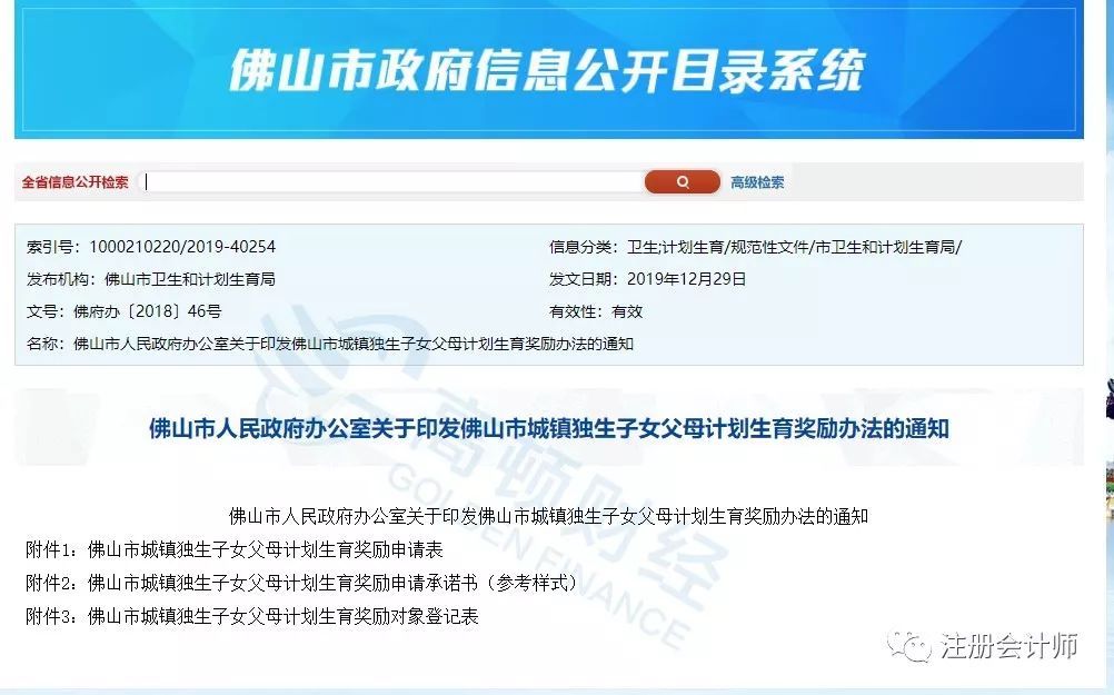 广东佛山:2019年1月1日起独生子女父母每人每月奖励200元