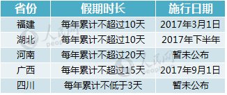 当然,山西并不是第一个吃螃蟹的省份,其他各个地区也相继实行独生子女照料假!除山西外,福建、湖北、广西、四川、河南等省份也公布了类似政策。最长假期为20天!