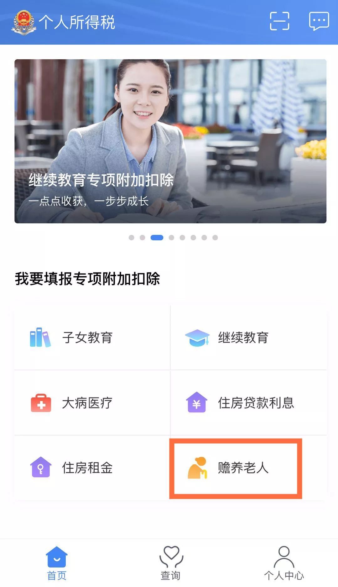 那么,独生子女在个税申报时怎么进行赡养老人扣除呢?大家可以在个税APP上操作: