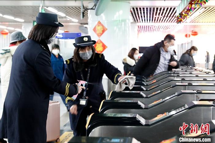 1月23日,工作人员对出站闸机进行消毒。截至当日14时,北京市已经确诊22例新型冠状病毒感染的肺炎病例。目前正值春运,北京交通部门积极做好新型冠状病毒疫情防控工作,无论公交还是地铁均强化车厢消毒工作,尤其地铁安检设备保证每小时消毒一次。同时,所有上岗人员一律佩戴口罩。截至1月24日14时,北京市累计确诊病例29例。其中1人病情较重,但已有好转,其余病情平稳。累计密切接触者273人,均在接受医学观察中,无异常情况报告。其中西城区4例、朝阳区3例、海淀区3例、丰台区2例、石景山区1例、通州区2例、顺义区1例、大兴区2例、昌平区2例,外地来京人员9例。武汉等地发生新型冠状病毒感染的肺炎疫情后,北京市启动突发公共卫生事件一级响应机制,把全力做好疫情防控工作作为当前重中之重任务,落实责任、关口前移、多措并举、严加防控,及时回应社会关切。北京市发布101所设有发热门诊的医疗机构名单和发热患者就诊指南,引导发热患者规范有序就医,减少交叉感染。针对冬春季传染病防治,连续发布健康教育和提示信息,引导公众采取健康行为。北京地坛医院、佑安医院、解放军总医院第五医学中心等3所市级定点医院对收治的确诊病例进行规范治疗,各区也指定了相应的定点医院,但尚未收治病人。