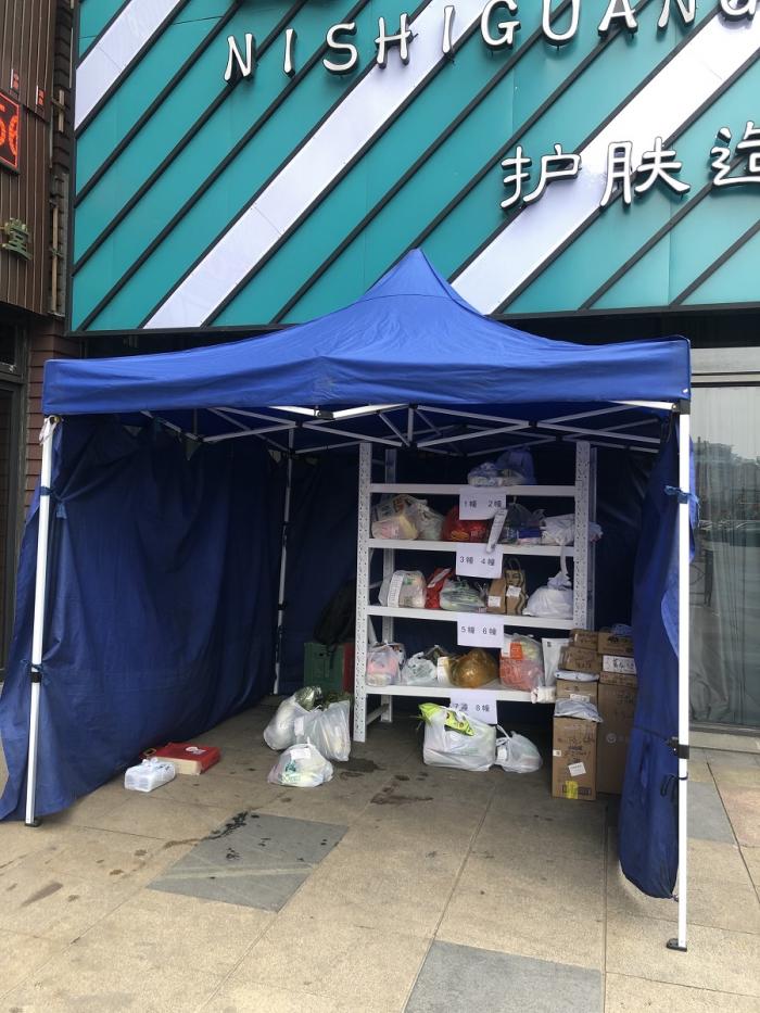 小区门口的快递集中存放区,现在快递进入不了小区,丰巢柜空置
