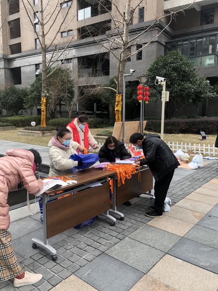 2月4日上午,杭州市滨江区某小区市民排队领取小区出入证。