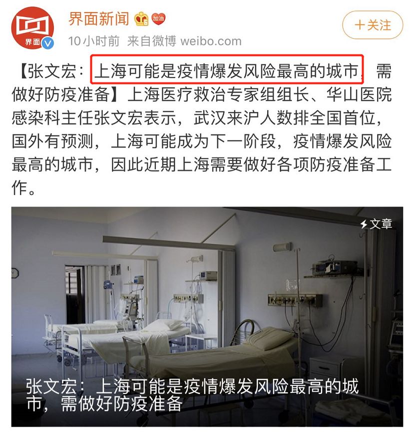 张文宏教授的解读是: 武汉来沪人数排全国首位, 上海可能是下一阶段疫情爆发风险最高的城市。。。