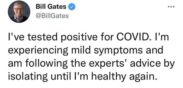 据央视新闻11日消息,当地时间5月10日,美国微软公司创始人比尔·盖茨通过社交媒体称其新冠病毒检测结果呈阳性,目前症状轻微,正处于隔离状态。