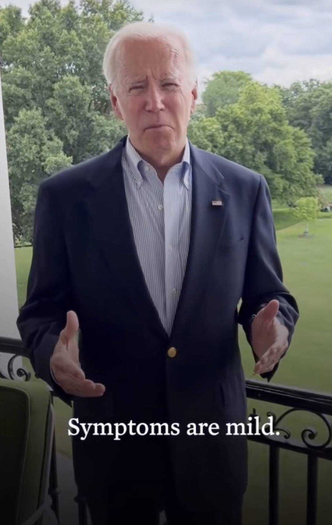 拜登在视频中说道:“嘿伙计们,我猜你们已经听说了,今天早上我的新冠检测呈阳性。但我已经接种过两剂疫苗和两剂加强针,症状轻微,非常感谢你们的询问和关心。我现在挺好的,完成了很多工作。我将继续完成它。同时,感谢你们的关心并保持信心。一切都会好起来的”。