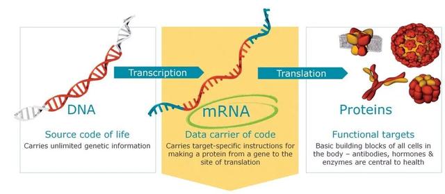 1961年,在加州理工学院的一个实验室,科学家首次成功提取到mRNA。之后对其功能和生物学行为进行了充分的研究。科学界发现,在DNA和蛋白质之间有个“中间人”,负责传递信息,mRNA正是这个“中间人”。