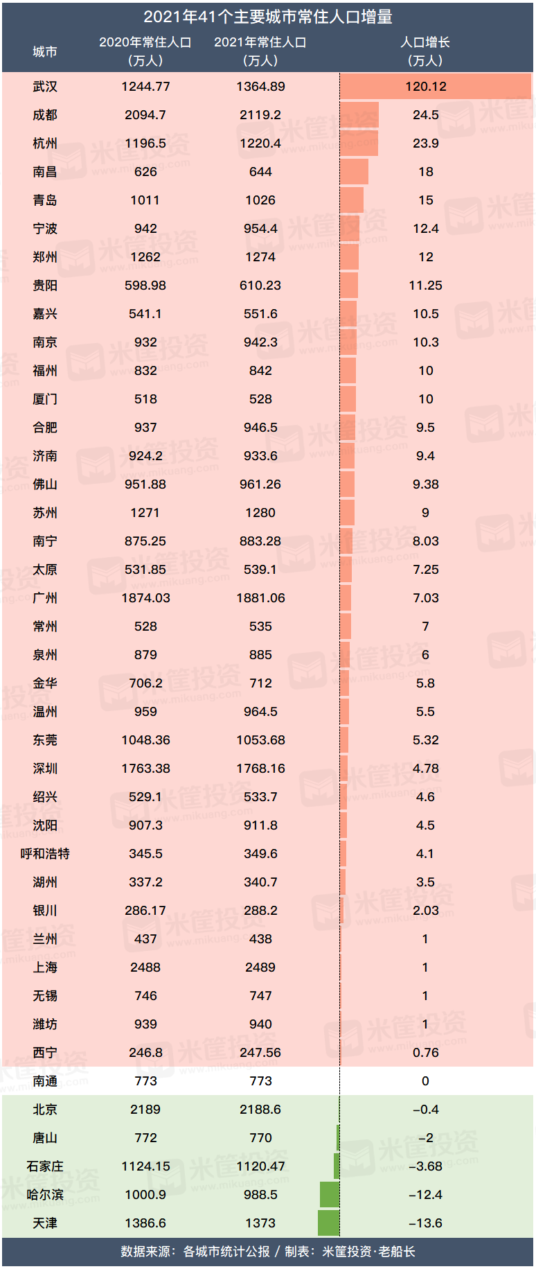 当四大一线城市总计增长只有12万人,当成都、杭州这些叱咤风云的网红城市,新增人口也不过20多万人,当华北的城市全部出现负增长,你就能明白: