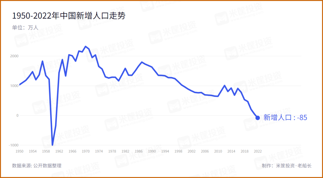 自此之后,中国新增人口便在下坡路上停不下来,一直到2021年的48万人。