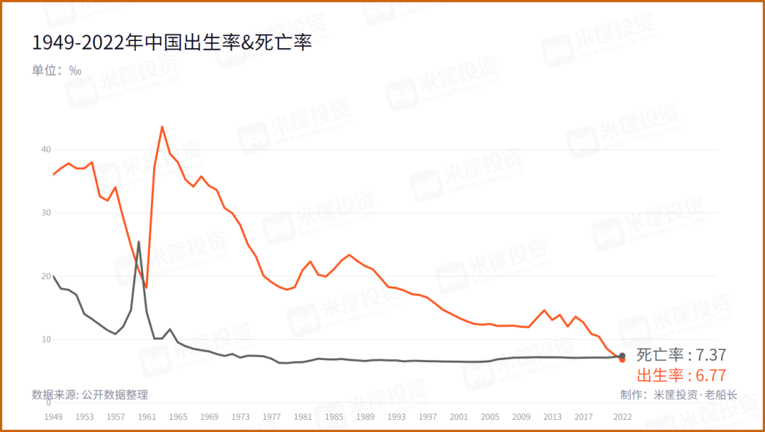 与此同时,死亡人口1041万人,连续两年超过1000万,人口死亡率为7.37‰,人口自然增长率为-0.6‰。