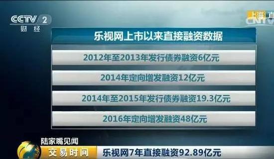 根据wind数据统计,自2010年上市七年时间里,乐视网累计融资超过300亿元。