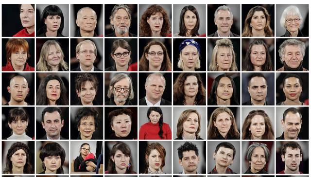 从3月14日开始,纽约MoMA展厅里,阿布拉莫维奇坐在桌子一端,另一端是自愿坐到对面的观众。64岁的阿布拉莫维奇接受了1500多人的对视挑战,她已经坐在木椅上两个半月,736小时30分钟,接受了1500多个陌生人的对视挑战。莎朗·斯通、Lady Gaga亦慕名而来。