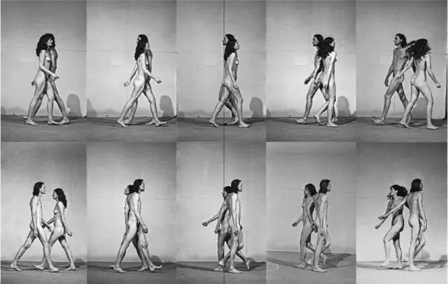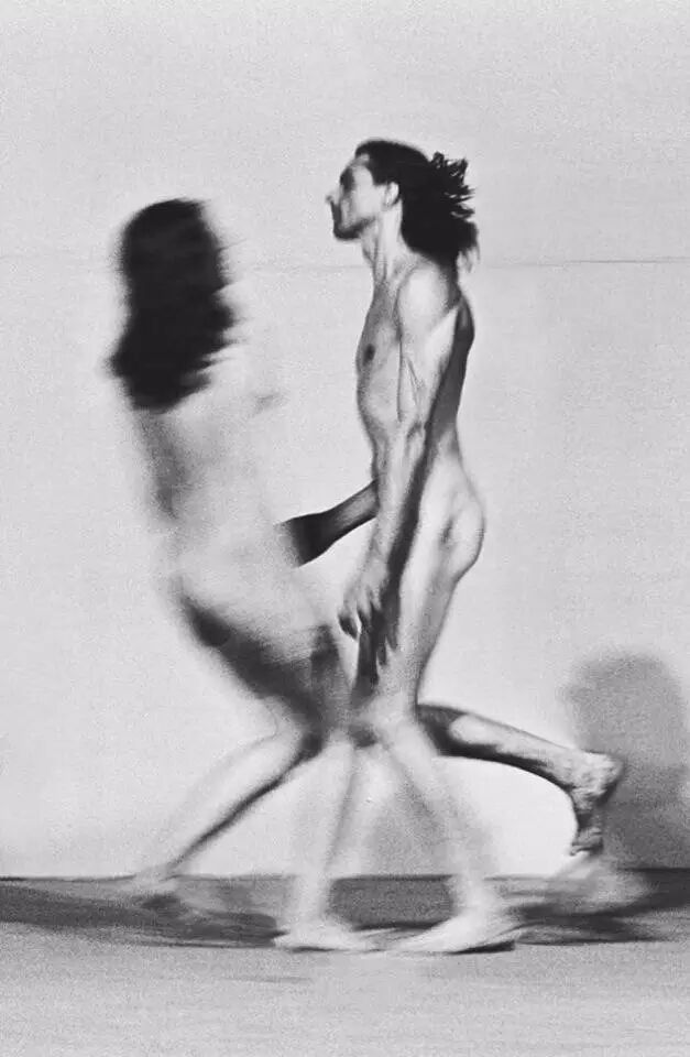 (艺术家不应该爱上另一个艺术家。这是阿布拉莫维奇的原话,但是她却爱了,轰轰烈烈,燃尽一切。遇见德国艺术家乌雷Ulay是在1975年的阿姆斯特丹,两人不仅同为行为艺术家,更是同月同日生。爱情促成了两人的合体表演,亦为他们带来事业高峰。从此至1988年,一直是两人合作创作作品。)