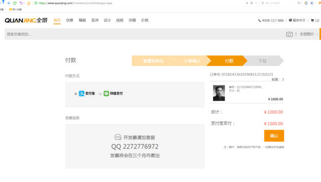 而“全景”官网上显示的图片售价一般为200-3000元之间,套餐则是10张600元。