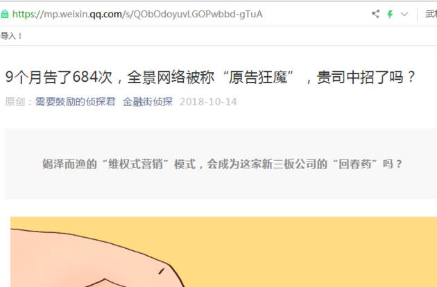 全景网络在新三板挂牌,其商业模式被质疑为“套路营销”,自媒体大号们更称其为原告狂魔。