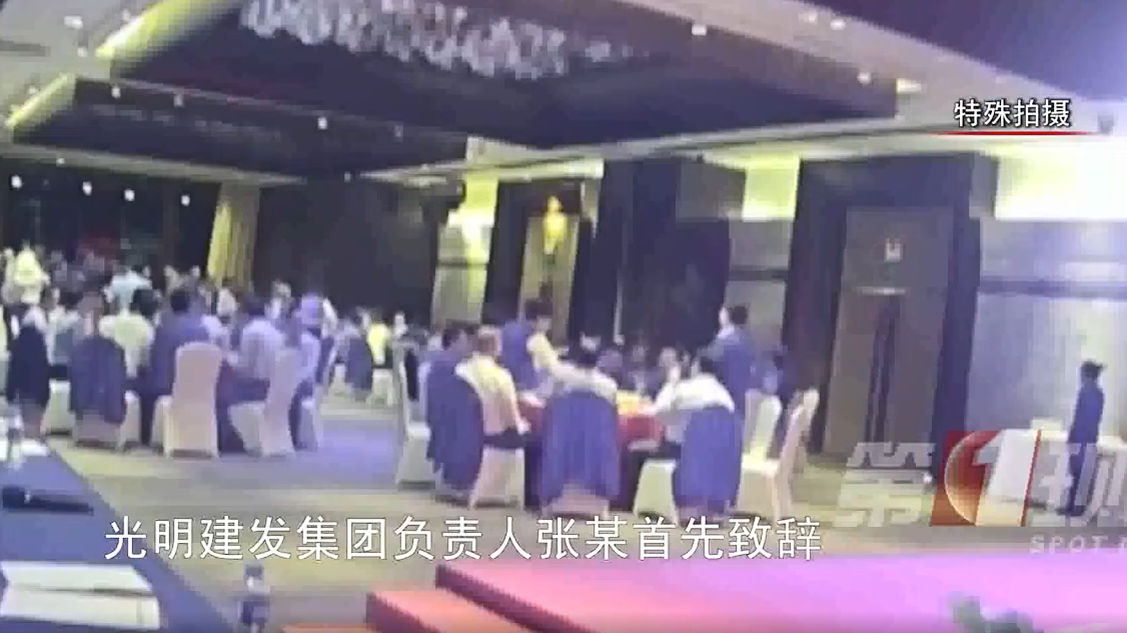 暗访组在现场发现,光明建发集团共安排了11桌每桌5000元的中式宴会套餐,其中不乏高档菜肴。为避人耳目,所有白酒都在宴会厅角落一间隐蔽的房间倒好之后再端上桌。当晚所用白酒为市价约8000元的1.3升装茅台酒,经访暗访组现场粗略计算,总价在16万元左右。本来半天的会议,不仅安排吃喝,“贴心”的主办方还为与会人员安排了住宿,一共订了58间大床房、26间双人房、5间高级套房。