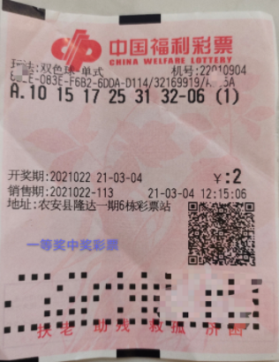 编者按:2元命中500万一直很多人的梦想。然而,吉林长春一位老彩民,近日里2元直接击落双色球一等1000万,简直是梦想加倍!然而,老者却说自己并不意外,因为他坚信付出就有回报,此前他也曾中过十万以上的大奖! 3月4日晚,中国福利彩票双色球游戏进行第2021022期开奖。当期双色球红球号码为10、15、17、25、31、32,蓝球号码为06,当期开出3注头奖,单注奖金高达1000万,可谓含金量十足!其中1注就被长春彩民王先生(化姓)斩获!据悉,王先生此次还中了1注二等奖,奖金合计1026万元! 3月5日下午,王先生(化姓)和父亲现身省福彩中心办理兑奖手续。中奖彩票是两张2元单式票,出自农安县隆达一期6栋22010904号彩站。  兑奖现场,王先生说,老父亲和自己都是福利彩票的忠实彩民,这次其实是自己父亲中的,父亲买彩票已经二十多年了,现在退休在家也没别的爱好,就会经常自己研究号码,研究走势,也有了自己的购彩心得,所以他每次都是凭着自己研究的号码去买彩票。 王先生说自己的父亲虽然年龄有些大了,但是头脑还很灵活,思维方式也不次于年轻人,开奖的当天晚上知道中奖后,父亲就给自己打电话了,他说,父亲是自己通过网络查询知道自己中奖的,而且当时还很认真的查询了中奖金额。 同时中奖者本人王老先生也在现场跟大家交流了自己的中奖心得,他说自己心态很好,小奖经常中,以前最多也中过10万多,他说这次中奖也不意外,因为他始终认为自己的付出会有回报。 在问到奖金规划时,二人说有一部分会继续支持福利事业,剩下的还没想好,不过王先生说奖金是父亲中的,怎么花还是要看父亲怎么安排。(吉林福彩网)