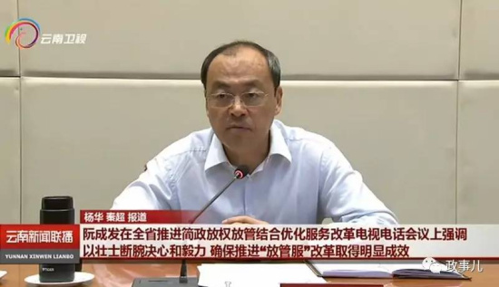 云南省政府6月13日,召开"放管服"会议落实国务院会议精神。会议上,省长阮成发怒了,痛批厅局办中介机构乱收费乱发福利。6月13日,国务院召开全国深化简政放权放管结合优化服务改革电视电话会议。李克强在会上要求,今年各地区各部门要针对烦扰群众的证明和手续摸清情况有力作为,四类"烦民"的证明和手续--凡没有法律法规依据的,能通过个人现有证照来证明的,能采取申请人书面承诺方式解决的,能通过网络核验的,一律取消。其后,各省份也都召开了"放管服"相关会议,云南省政府就在6月13日当天,召开会议落实国务院会议精神。在云南省的这次会议上,省长阮成发怒了,痛批厅局办中介机构乱收费乱发福利。当时,阮成发脱稿重点讲了两个问题:提高认识、增强云南"放管服改革"的紧迫感;坚持问题导向,壮士断腕推动"放管服改革"在云南落地生根。阮成发说,对于政府来说"法无授权不可为";而对于企业和群众来说,法无禁止即许可即自由,"政府办事人员不要设卡人为制造矛盾"。他举例说,在滇中某地区,一个企业完成投资审批要一年时间,"我要是投资商早走了"。他谈到了云南的政商环境,"云南有些地方的政商关系,要么太'紧密'官商勾结,要么'老死不相往来',亲和清做得都不好。"他说,政府官员不能有"官本位"思想,要营造尊重企业家的氛围,"企业家是'老大',产业才是第一位的"。他还在会上举了几个例子,说明云南推动"放管服改革"的迫切性--个别委、办、厅、局下属、相关的中介机构有十多家。阮成发问道:"你搞那么多中介机构,无非是安排人、收管理费,现在你收了费干什么?还敢乱发福利吗?"可查询到的公开报道显示,这是阮成发去年12月担任云南代省长(今年1月任云南省长)以来,第二次"发怒"。第一次"发怒"是在今年2月10日,云南省政府第106次常务会议上。这次会议召开前,云南发生了"丽江女游客被打毁容"事件。会议的第三个议题就与整治旅游乱象有关,听取"整治旅游市场乱象,促进云南旅游产业转型升级发展"的工作汇报。春节前,云南省副省长陈舜以普通游客的身份,暗访了旅游市场,遭遇"一对一"强迫购物。就"丽江女游客被打毁容"事件,他还带队到丽江进行处置。他在会上发言说,旅游市场整治的重点有三个:所有不合理低价游产品下架;切断行业灰色利益链条;建立完善行业服务规范。"陈舜同志都去暗访了,余繁去暗访过吗?"阮成发问到,余繁是云南省旅发委主任。"去过,不过他们大都认识我,效果不明显",余繁答。阮成发表示,出个事要副省长出动,"杀鸡用牛刀"。要强化州市和县级政府责任,属地管理,在基层的省属企业要服从地方行业管理,老出问题的地方要全省通报。"有些购物店之所以那么嚣张,为什么就关不掉呢?背后有人吧","对于造成恶劣影响的购物店,工商、公安甚至纪检部门要去查查。"到云南前,阮成发一直在湖北工作,从2007年12月开始,先后担任武汉市长、武汉市委书记。在武汉,阮成发因不合理现象发怒、痛批的次数更多,公开报道至少不下四次。第一次是2008年12月,在武汉市政府常务会上,时任武汉市长阮成发谈到了武汉的地名,"武汉竟然有条'黄泉路',这样的路,谁还敢走?!""武汉有些路名取得太没水平!"他当时强调,武汉地名乱起名、滥用名的现象必须好好管一管了。第二次是2009年1月,在全市经济工作会上,因个别政府部门执行力不佳,时任武汉市长阮成发"发火了","我回武汉工作,曾表态尽量不发脾气,但有些部门一碰到问题和矛盾就说不行,一二三四五不行,六七八九十也不行,那还要你这个部门干什么!"他当时表示,2009年起政府将按"大部门制"推行机构改革,几个部门合在一块,这对改善政府执行力是个机遇。他期待干部养成"马上就办"、"有诉必复"的好习惯,"看准的事一抓到底,而且要抓出成效!"第三次是2009年7月,在武汉全市经济形势分析会上,时任武汉市长阮成发痛斥了前不久武汉市发生的经济适用房"六连号"事件。"住着200多平方米的'豪宅',居然还在申请经济适用房!可见,经济适用房弄虚作假的现象已到了无以复加的地步。"他当时说,经济适用房"六连号"和出租车套牌事件,都和"内鬼"有关。有关行业管理部门工作人员串通、勾结社会不法分子,利用管理职权进行权钱交易,影响十分恶劣,对政府公信力和城市形象造成了巨大损害。第四次是2013年2月,在武汉全市反腐倡廉暨深化治庸问责工作会议上,阮成发痛批领导干部特权思想、特权现象,要求下决心解决好"批条子"问题,"如果办事靠'批条子',这个社会就没有公平可言,就没有希望了!"在这次会上,阮成发还谈到了武汉市公交集团原董事长迟旭东案。2015年4月,迟旭东因犯受贿罪,被判处无期徒刑,其受贿金额近千万元。从迟旭东受贿案中,挖出武汉公交系统内职务犯罪案件21件23人,挽回经济损失4000余万元。阮成发当时表示,"实在是胆大妄为!""公交集团很困难,公交司机待遇很低,每天早出晚归、辛辛苦苦,他们单位的'一把手'领导竟然敢这样贪财,司机们该怎么想?这样的干部能不处理吗?"
