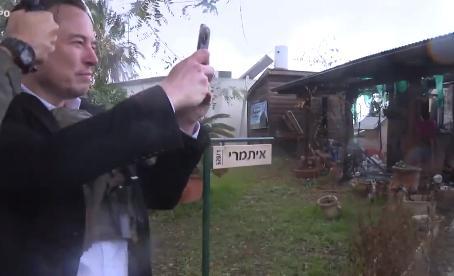 11月27日,马斯克(左)和内塔尼亚胡(中)在卡法阿扎参观 图自《以色列时报》
