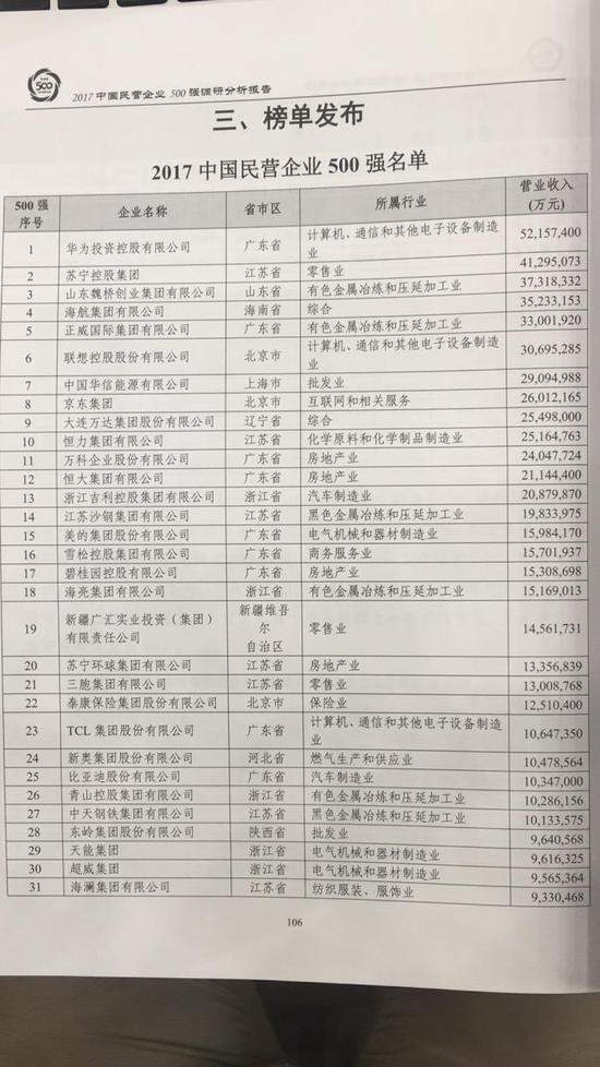 撰文|张银银 一年一度,又到了全国工商联发布《2017中国民营企业500强调研分析报告》的日子,相比起大型央(国)有企业占主导的中国企业500强财富报告,一份民营企业榜单,其实更能反映出当前宏观经济发展、区域经济活力、劳动力就业的实际情况。 这张榜单上,江苏沙钢集团有限公司以2075.28亿元的营业收入荣登榜首。华为和苏宁以2039亿元、1947亿元分列第二、第三位。 从总量上看,2016年,民企500强实现税后净利润4387亿元,比上年增长12.17%。其中,恒大地产、华为和万科的净利润均过百亿元大关,成为500强中最赚钱的三家公司。 虽说因统计口径的原因,和实际情况会有些许出入,但不得不承认,这仍然算得上一份反映我国各地经济真实活力、具有样板意义的榜单。 今天,杠杆游戏就从地域分布上来与杆友们探讨,民企的区域分布特点与趋势。 1、浙江连续19年称霸中国民企500强,江浙沪继续占据近半壁江山 江浙沪民营企业发达不是新鲜事。与往年类似,2017年的民营企业500强中,江浙沪累计数量占215家,占据了榜单近半壁江山。这都是较早市场化和经济开放的“领先优势”。 其中,仅浙江一省就有120家上榜,连续19年蝉联全国第一。 相比之下,珠三角的广东省这一数量明显落后,500强中仅入围60家。不仅低于浙江,比江苏的82家也低。说是被长三角吊打也不为过,哈哈,说笑其实。 图1.2017年中国民企500强各省区市数量分布  图表来源|21世纪经济报道 不过,浙江2015年时有138家企业上榜民企500强,2016年这一数据为134家。浙江的下滑也很明显。   广东民营经济之活跃是众所周知的,但可能就是相对低调、务实,闷声发大财的老板多,很多企业不愿对外公布自身经营情况;另外,500强表面上少一些,不代表1000强少、2000强少;但不得不承认的是,广东巨头型的民营企业确实比江浙要少。同时,民营经济总量、个体经营户数量上,广东是很强势的。 2、江浙沪也有下滑,特别是上海民企500强数量仅和天津、重庆同一层次 值得注意的是,相比往年,江浙沪上榜的企业正逐步减少,一方面是其他区域强势崛起追赶,另一方面也和长三角民企面临的一些困境有关。 曾经,借力于改革开放大好政策,一批批的江浙人开始下海经商,从做纽扣、袜子、衬衣开始,逐步成长为实力企业。也正因为此,长三角才长期在民企榜单上傲视群雄。 “苏南模式”名扬天下,由政府吸引外资在本区域投资设厂,建立了国家级、省级工业园区(高新区、经开区导等),利用低廉的人力与土地等资源生产出口产品。 政府利用土地资源,与外商资本联合推动地方经济增长。到目前为止,中国内地绝大多数地区的发展还在延续这样的思路。 苏州经济更是快速实现了飞跃。台资知名企业明基、华硕和大批日资企业,陆续入驻苏州工业园区。中新间第一个国家级合作项目落地苏州,不仅做强了苏州,也为我国工业园区发展探索了经验。 但是,这样的模式也正面临一些危机,尤其在2008年金融危机之后,受到重挫。 长三角大部分地区正遭遇瓶颈:一边是外需萎缩,导致订单量下降,另一边是不断要求上涨的劳动力成本,转型的压力山大。人力成本、土地成本居高不下,导致空心化日益严重。 每次金融调控,国企贷款份额保障,损失惨重的是民营企业份额。故民营企业不少蜕变成为民营资本,纷纷投资于虚拟行业,甚至出走海外。 长三角民企超越广东这十几年,是中国民营经济大幅度扩张的时期,现如今,这股势头受到了强劲的阻力。 还值得一说的是,上海的民企500强数量只有13家,和另外两个整体实力略弱的天津、重庆实际处于同一层次。天津为13家,重庆为11家。而这个情况不仅仅是今年如此。如果天津长期被批靠外资、央企,上海呢? 对了,北京也只有14家上榜。杠杆游戏就不说了。 3、中国经济第三极京津冀仅46家民企上榜,不到浙江一半 与长三角和珠三角的热闹PK成鲜明对比,我国综合经济实力第三极京津冀,在民企500强榜单中占的席位并不多。 北京14席、天津13席、河北19席,加起来46席,还不及浙江的一半。 不过这个情况也在意料之中,毕竟京津冀一直走的是“高大上”路线。正如天津社科院城市经济研究所所长蔡玉胜先生所说的,“相比其他地区,京津冀地区经济发展有其特珠性。因为在这一区域政策的力量非常强势,国企有着很多先天的优势,国有经济的力量非常强,民营经济的发展相对较为弱势。”  对,就是那股力量,你懂的! 不过,在京津冀协同发展战略之后,这对这一区域的民营经济也是一大利好;更早之前,双创这股大风刮得很大,吹起了不少明星企业。北京这方面一般地方比不了,杠杆游戏认为,中国“硅谷”深圳都无法企及。 据说,这一地区协作越来越多,也给民营经济搭建了全新的发展舞台。原有的诸多国有经济限制类领域也开始像民营经济敞开,交通、生态、基础设施建设、新型城镇化建设、PPP模式等。 而有志于抢夺我国综合经济实力第四极的川渝、中三角,各有29席、34席,基本打个平手。其中湖北上榜19家,中西部第一,重庆11家中西部第三。此外,四川、湖南、江西各有10家、8家、7家。