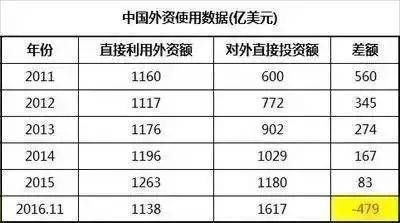 而另一方面,中国开始兴起了对外投资,这意味着中国的产业正在迁出,财富开始逃离。到2016年,终于出逃的速度超过流入速度了。