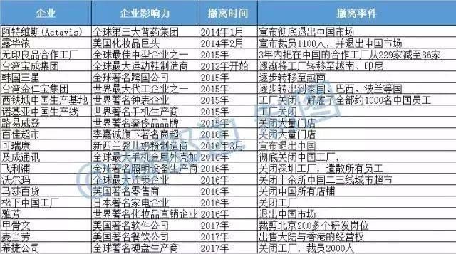 著名外资撤离清单