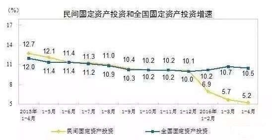 如今,民间资本也玩不动了,从2015年年底开始,民间资本对于固定资产的投资增速呈直线下跌,而整体的投资增速却还保持稳健,究竟是什么人在往里面“输血”,想必大家都很清楚了吧?