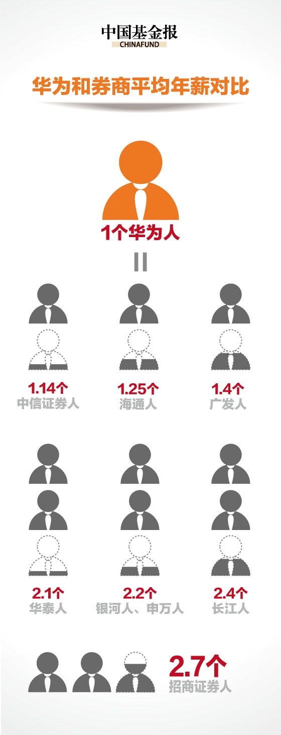 华为的平均年薪是 光大证券 、 华泰证券 、 国投安信 和 东方证券 平均年薪的2倍左右。
