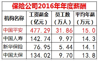 例如中国平安尽管2016年全年总薪资达到了477.29亿元,但由于员工人数超过30万,2016年平均年薪为15万元,华为员工的平均公司是中国平安的4.2倍。
