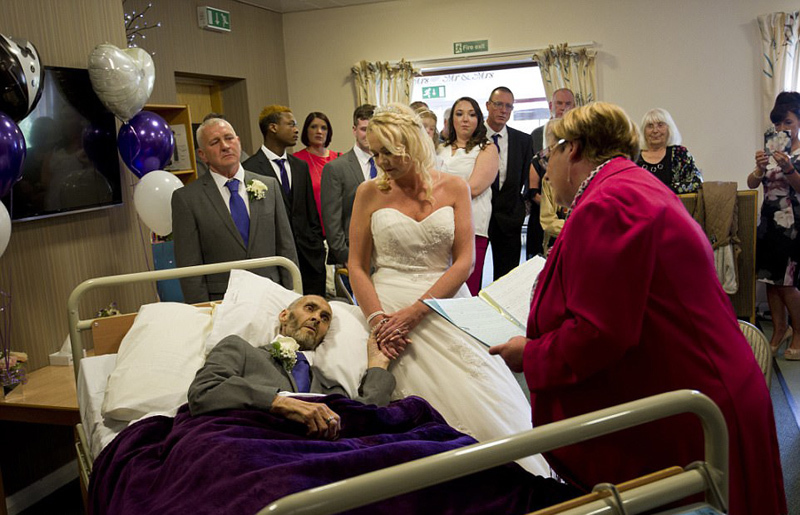 英国一位癌症晚期的老者在陌生人的慷慨解囊之下,于弥留之际与佳人喜结良缘,没有抱憾而终。