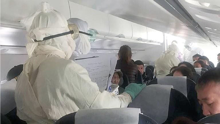 蒙古防疫人员在登机检查