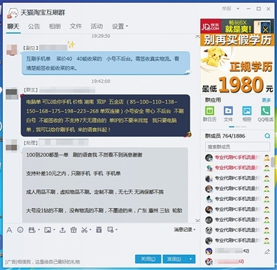 在一个刷单群中,充斥着大量刷单信息。获利90余万被处罚金92万;记者体验发现各种网店刷单依然活跃建立刷单炒信平台,在淘宝网站吸纳卖家互刷好评或者虚假交易,以此欺骗淘宝买家……昨日,刷单组织者李某在浙江省杭州市余杭区人民法院接受审理。法院当庭一审判处李某有期徒刑5年9个月。这是国内首例刷单炒信被追究刑事责任的案件。辩称不知刷单是犯罪昨天,"炒信刷单第一案"在杭州市余杭区第一法庭开庭审理,除了来自全国的几十家媒体,被告人李某的家人也来到法院旁听。据指控,2013年2月,被告人李某通过创建"零距网商联盟"网站和利用YY语音聊天工具建立刷单炒信平台,吸纳淘宝卖家注册账户成为会员,并收取300-500元不等的会员费和40元的平台管理维护费,李某通过制定刷单炒信规则与流程,组织及协助会员通过该平台发布或接受刷单炒信任务。会员在承接任务后,通过与发布任务的会员在淘宝网上进行虚假交易并给予虚假好评的方式赚取任务点,从而有能力在该平台自行发布刷单任务,使得其他会员为自己刷单,进而提升自己淘宝店铺的销量和信誉,欺骗淘宝买家。其间,李某还通过向会员销售任务点的方式牟利。截至2014年6月,李某共获利90余万元人民币。经查询,由江苏省通信管理局回函,李某创建的http://5sbb.com网站不具备获得增值电信业务经营许可的条件。公诉机关认为,李某的行为违反国家规定,以营利为目的,明知是虚假信息,仍通过网络有偿提供发布信息等服务,扰乱市场秩序,情节特别严重,应当以非法经营罪追究刑事责任。李某在法庭上承认:"我的行为对淘宝和电子商务是有害的,我后来就不打算做了。"但他随即表示,"刷单在淘宝网上是违规,但我从来没想过这是犯法的。"同时他表示,刷单是商户自己的事情,并不是因为他组织的。记者了解到,在因为炒信刷单而被取保候审期间,李某又在江西因侵犯公民个人信息,于2017年5月16日被判有期徒刑9个月。一审判处有期徒刑5年9个月余杭区法院一审审理认为,被告人李某违反国家规定,以营利为目的,明知是虚假的信息仍通过网络有偿提供发布信息等服务,扰乱市场秩序,且属情节特别严重。法院当庭一审判决李某有期徒刑5年6个月,并处罚金90万元。由于李某在2017年5月16日因侵犯公民个人信息罪被法院判处有期徒刑9个月,并处罚金2万元,法院决定对其执行有期徒刑5年9个月,并处罚金92万元。庭后,主审法官俞潇在接受媒体采访时表示,对李某以非法经营罪判处5年6个月,量刑方面,主要是从李某的获利数额来考量的,当下的网购环境需要净化,互相刷信的行为,不仅影响消费者购买时的判断,也容易带来交易风险。"如果不建立一个正常的网络交易秩序,不仅对消费者个人,甚至对整个网络经济的发展都会有影响。"据网络交易平台介绍,李某在炒信过程中非法获利的途径主要有几个方面:一是通过收取会员费和培训费;二是卖任务点的收入,其以每个点5元的价格出售获利;三是帮助别人炒信获利;四是销售空包获利,通过代售空包的差价获取利益。■ 案例网络交易涉刑第一案纷纷落判在此前,打击刷单的主要手段是行政处罚,但工商部门判罚的上限是20万,远不能震慑违法行为。记者通过梳理发现,在此案之前,法院已经先后对反向刷单首案以及知识产权流氓首案,做出了刑事判决,责任人均被追究了刑事责任。反向刷单第一案:疯狂购买竞争对手产品1500多单,然后再迅速退货,导致对手因涉嫌"刷单"触发淘宝处罚机制,搜索排名骤降,在短短几天内损失超过10万元。2016年12月,淘宝店主董某因破坏生产经营罪被判处有期徒刑1年缓刑1年。知产流氓第一案:冒充品牌官网,通过恶意投诉淘宝商家来收取所谓"授权费",一个"知产流氓"团伙在5个月内获利近5万。2017年5月,广东佛山南海区法院对首例利用互联网维权机制敲诈勒索案宣判,两名被告人因犯敲诈勒索罪分别被法院判处有期徒刑1年6个月和有期徒刑8个月。■ 体验输入"刷"字搜出上百刷单群去年5月底,本报曾经报道《起底"刷单工厂":组团给电商销量注水》,揭露刷单平台提供一条龙服务,动辄召集数以千计刷手专业培训,模拟购物、虚假好评。一年多过去了,网络上依然有刷单平台存在,他们或在网站、或在语音平台收取会费,为商家提供刷单服务。刷单语音平台被曝光后依然存在记者搜索输入"刷单平台",排在前三位的均是刷单网站。在网站首页上,还写有"在这里大家可以安全的进行淘宝刷钻等活动,完全不用担心资金问题"、"以诚信、责任、正规为网站思想,最大限度提升淘宝信誉"等宣传语。点击链接进去,就有客服弹窗询问是商家刷单还是刷手找兼职。不论商家还是刷手,都要交几百甚至上千元的入驻费用,在网站注册会员后开始刷单业务。除了在网站刷单,商家们采用更多的还是YY、QT、IS等语音平台。新京报去年曝光用于刷单的IS180频道已经不存在。而IS3613频道依然正常运行,频道名称也没有变化。任何人进入频道,都要告知介绍人和组别,随后有专人加QQ聊天。"商家入会是58元,一次性收费,永久会员,每天24小时可以进频道来放单。"在交费后,商家还需填写一份入会资料,身份证号、支付宝账号、店铺信息都要输入。此外,频道还为商家提供托管服务,即由频道主持人为商家全程放单。每单加佣金5元。