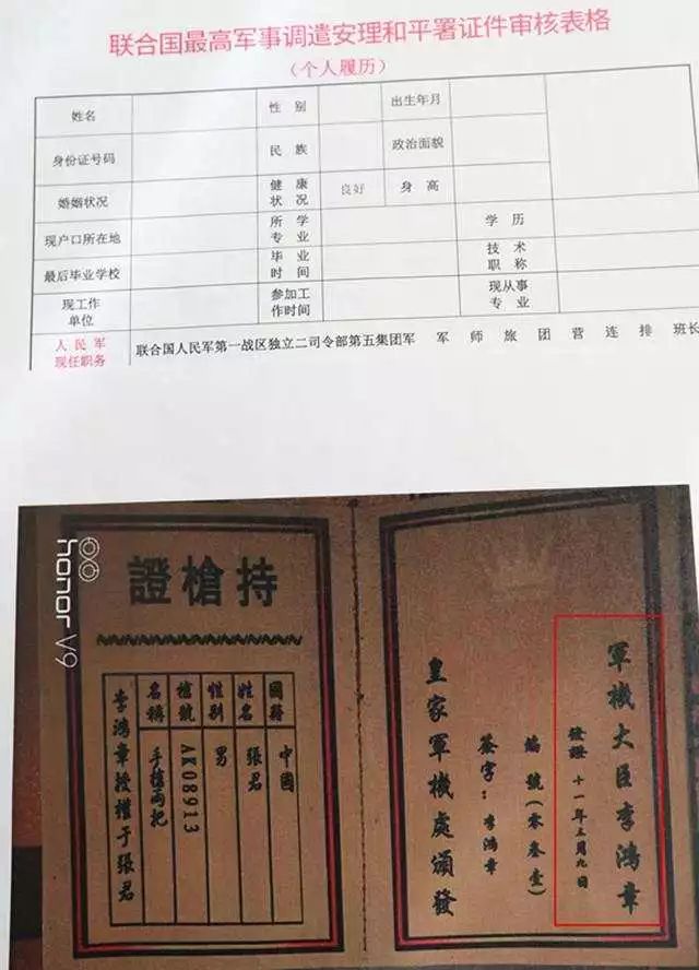 联合国持枪证是李鸿章签发
