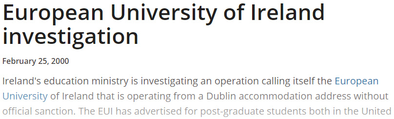 比如,华东政法大学商学院的陈燕教授,官网显示也是爱尔兰欧洲大学的博士,现在已打不开。