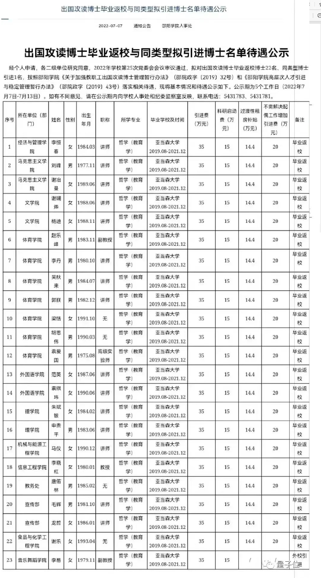 他们最近公示人才引进,共花费1800多万元,从菲律宾亚当森大学引进23名毕业博士。其中22人读博前就已经是邵阳学院的在职教师,公示的备注是“毕业返校”。