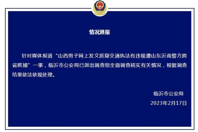 山西天镇县自媒体人网上发文质疑山东沂南县警方交通执法违规被跨省抓捕