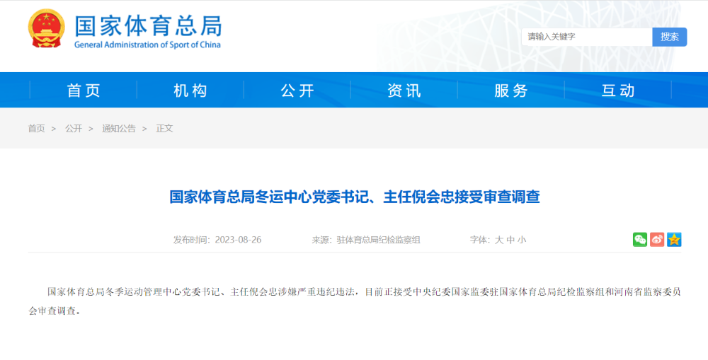 国家体育总局冬运中心党委书记、主任倪会忠被查