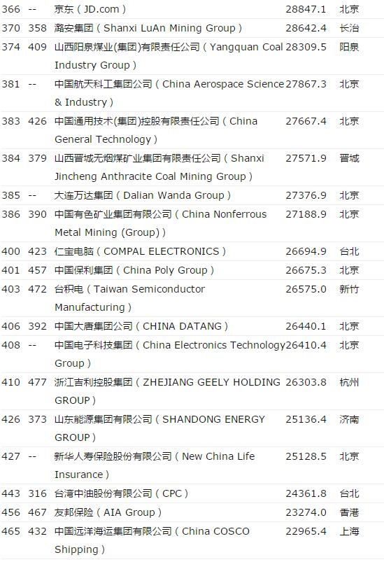 《财富》2016年世界500强出炉 110家中国企业上榜